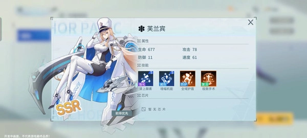 SSR里目前只有一个坦克,所以她可以当作兰思妮的下位替代使用。她的强度是值得肯定的,毕竟能把防御叠得非常高,而且自身也具备升格为SSR的潜力。