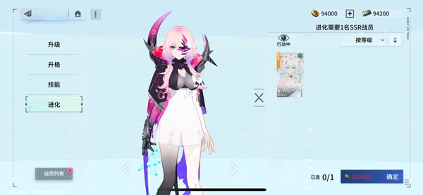 升格需要消耗同名角色,SR晋升为SSR要用到四个同名角色。不过一旦升到SSR就无法再进行升格操作了,这时候得转向进化系统。进化的材料要求相对宽松,只要是相同稀有度等级的角色都能当作素材使用。目前关于后续进化的具体方向和等级划分,还没有详细的了解。