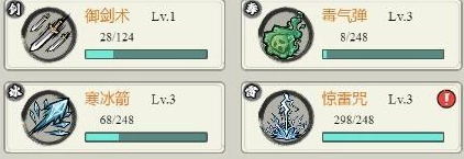毒剑修流派的招式包括:毒气弹、御剑术、寒冰箭、寒冰突刺以及风暴术。