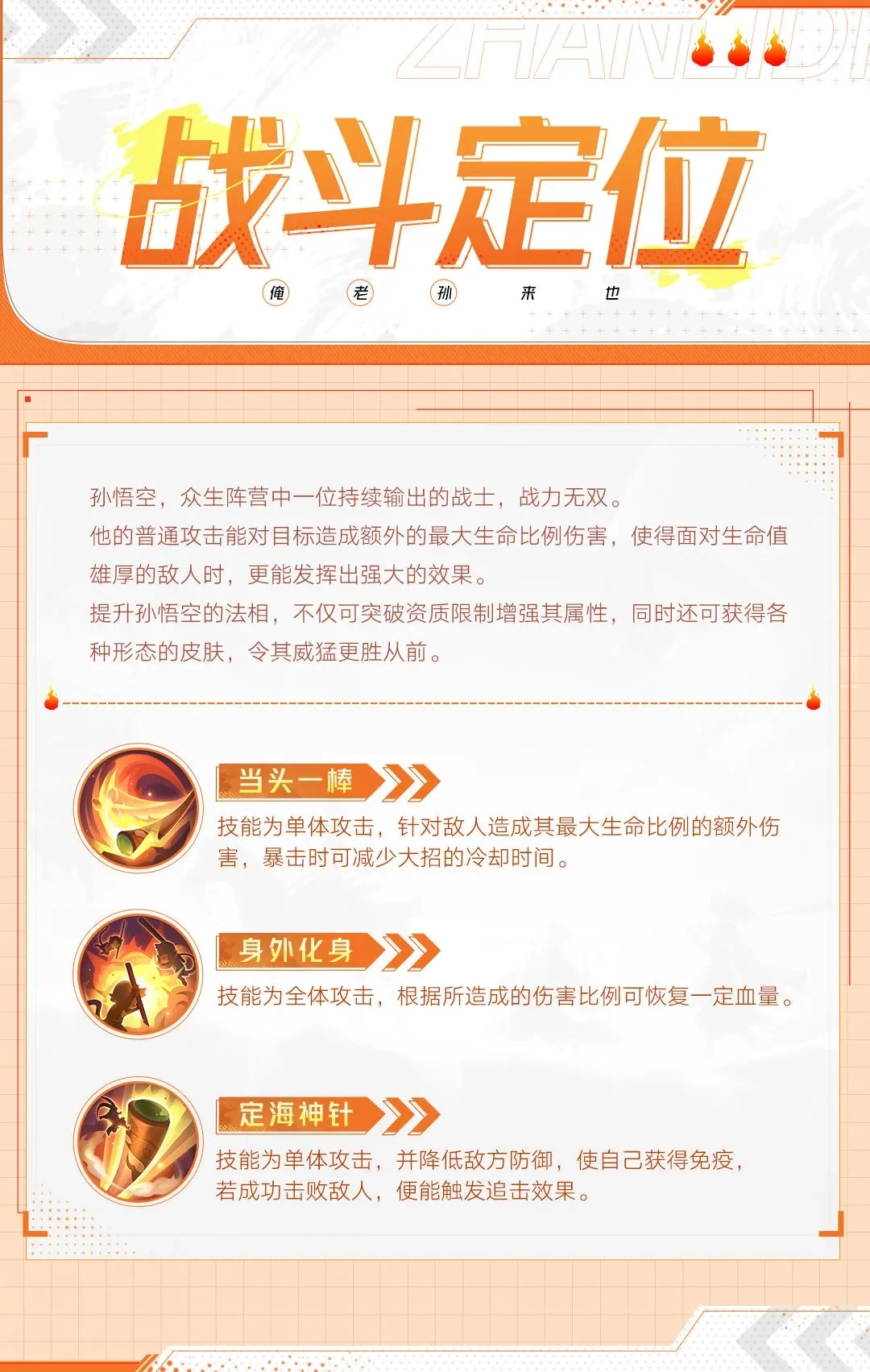被动技能:当敌方角色死亡时,自身将获得攻击提升、防御提升效果,同时触发业火状态——下次攻击时,会按照造成伤害的一定比例回复自身血量。