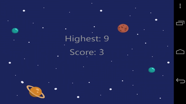 《极品飞船》是一款快节奏的休闲游戏,玩家通过重力感应操作游戏,控制飞船在太空的陨石中穿梭。祝你好运。摆正屏幕,移动手机,避免飞船撞击陨石,否则游戏结束。如果你在20秒后还活着,那么,恭喜你,你被视为一个真正的男人,开始挑战吧!