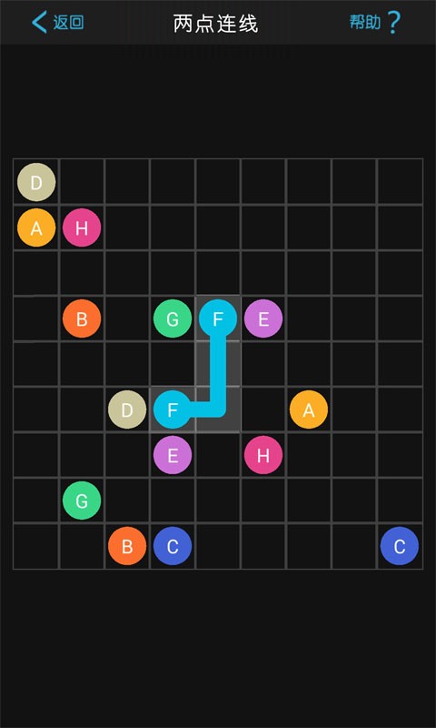 两点连线安卓版是一款简单的休闲益智游戏。游戏玩法很简单只要将两个颜色一样的亮点链接就可以了。这款游戏和之前的2048有异曲同工之妙,有兴趣的朋友可以下载玩玩,非常不错。