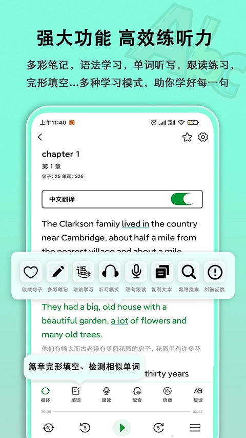 语法分析助手免费版具备听力练习功能,可辅助用户开展听力训练,从而帮助提升听力理解能力。