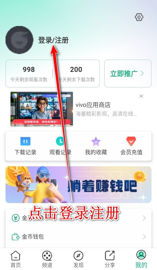 4. 当然,要是用户们希望能一直免费观看橙子视频,也有相应办法,在“我的”页面点击登录注册即可。