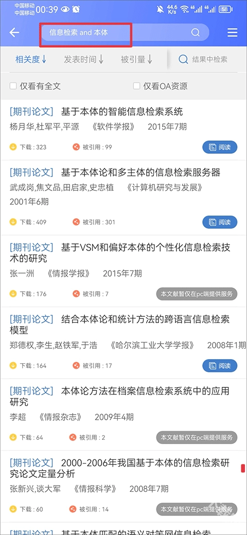 丰富的文献资源可一键搜索,系统支持多种排序与过滤方式,助您快速定位所需文献。