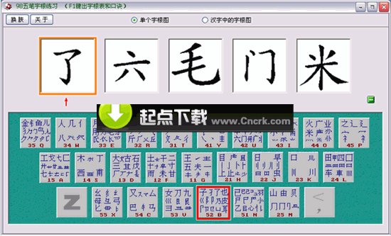 软件的字根练习有两种方式,一种是我们常见的看见五笔字根图进行练习。另一种就是在汉字上标明字根位置进行,这种练习方式更加直观。