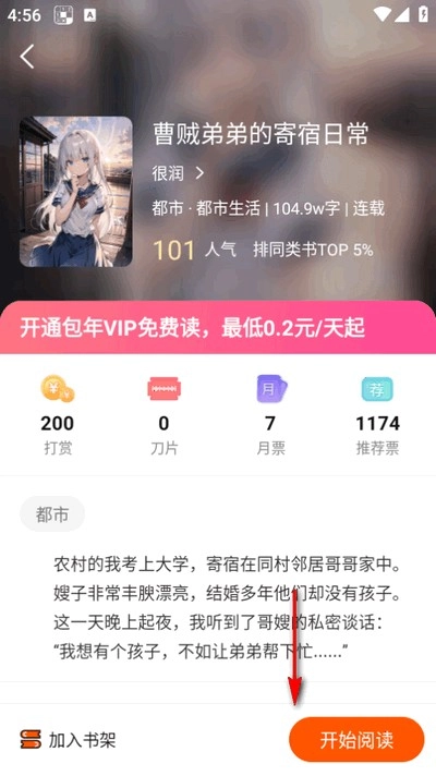 在小说详情页点击"加入书架",如图。