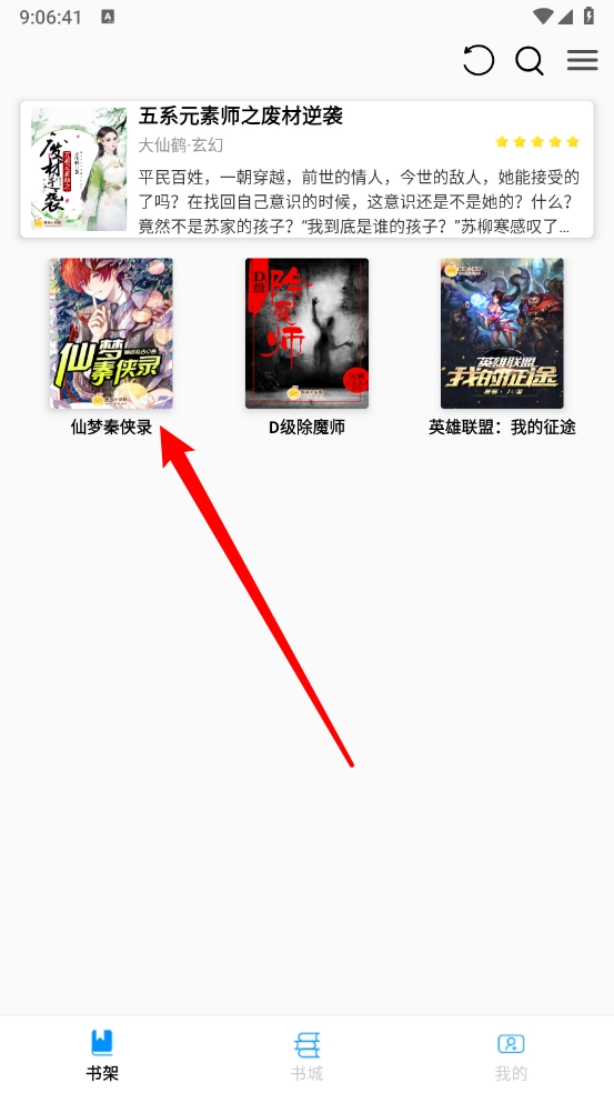 回到主页后点击进入书架板块,参照图示,就能查看已添加的目标小说。