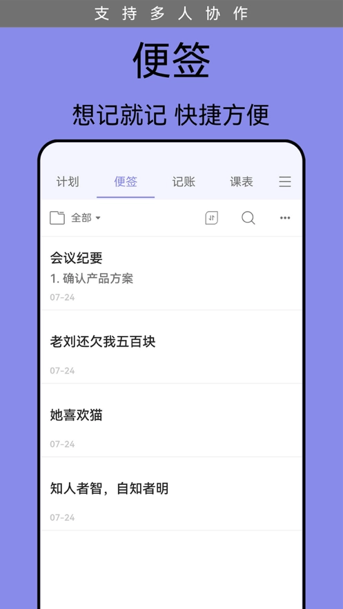 -任务计划共享协作:可以和家人、朋友以及同事一起分享任务清单,多人共同配合完成任务,并互相监督执行情况。