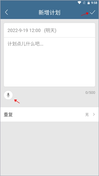 手动或语音输入未来计划,根据需要设置重复,点击右上角“√”保存。