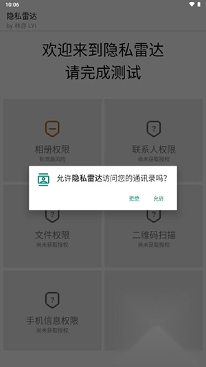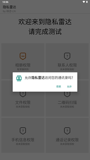 隐私雷达借助模拟真实手机应用的方式,向用户请求各类访问权限与功能调用权限。