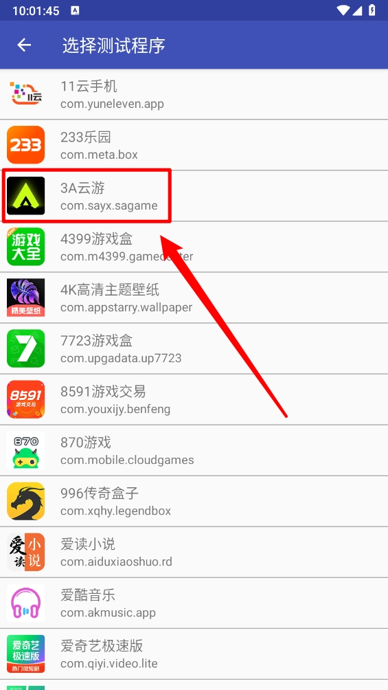 首先在安装,进入主页选择测试的程序。