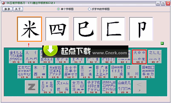 软件的字根练习有两种方式,一种是我们常见的看见五笔字根图进行练习。另一种就是在汉字上标明字根位置进行,这种练习方式更加直观。