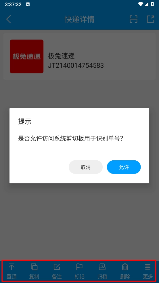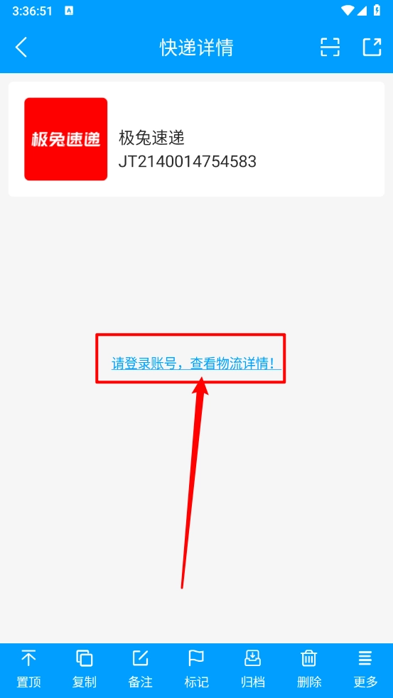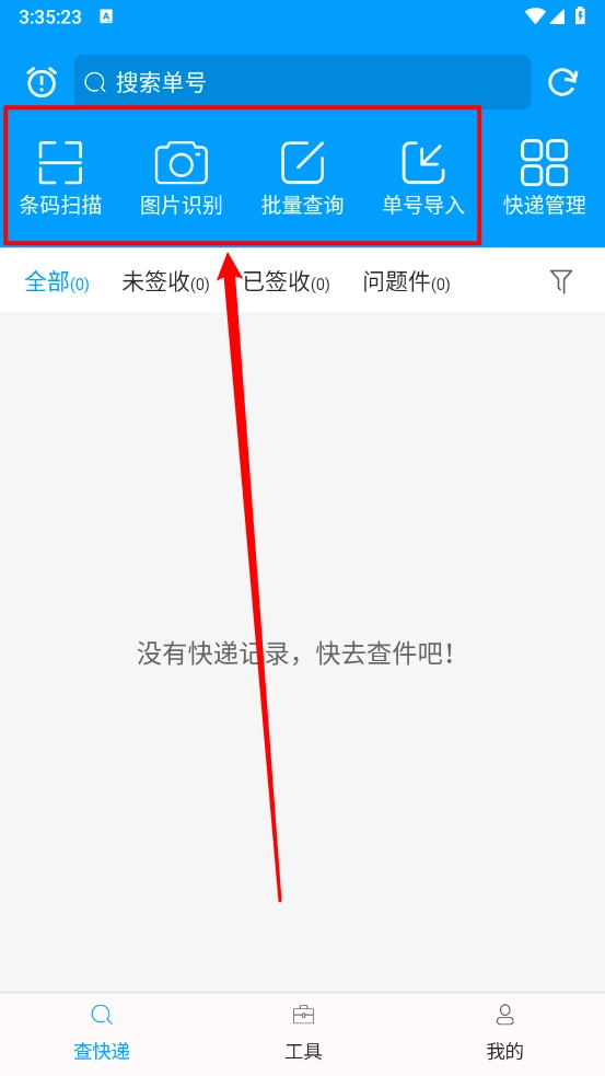 还可以直接点击上方的搜索框,输入快递单号、历史单号或备注信息进行查找。