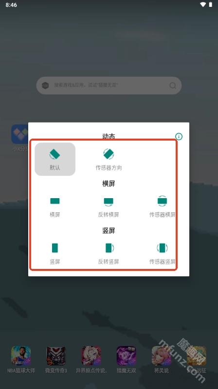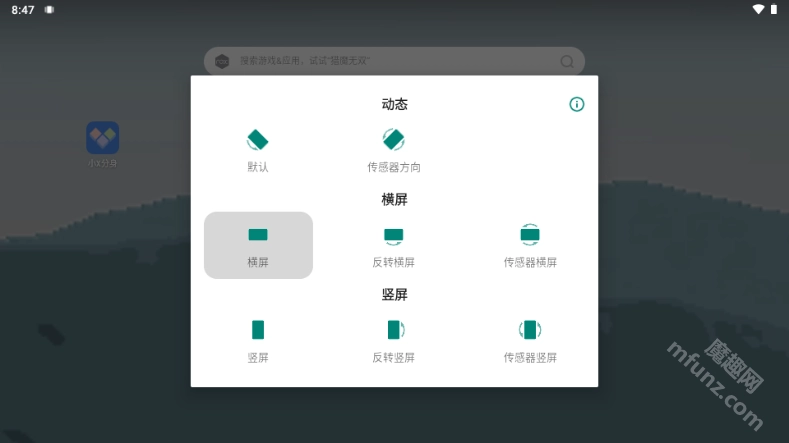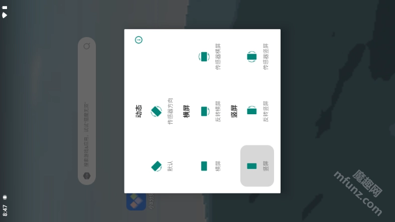 除了常规的竖屏与横屏锁定功能外,还额外提供反向竖屏和反向横屏的锁定选项。