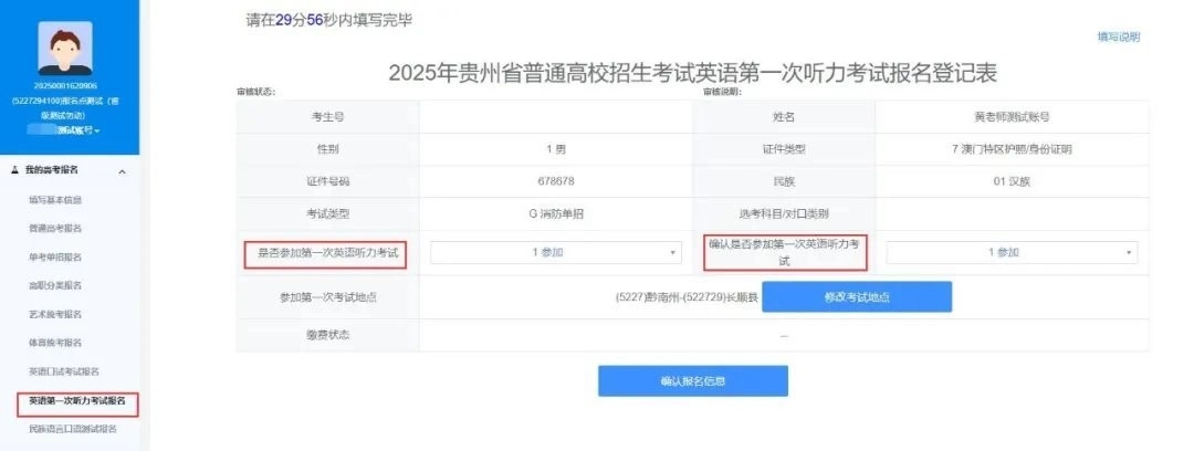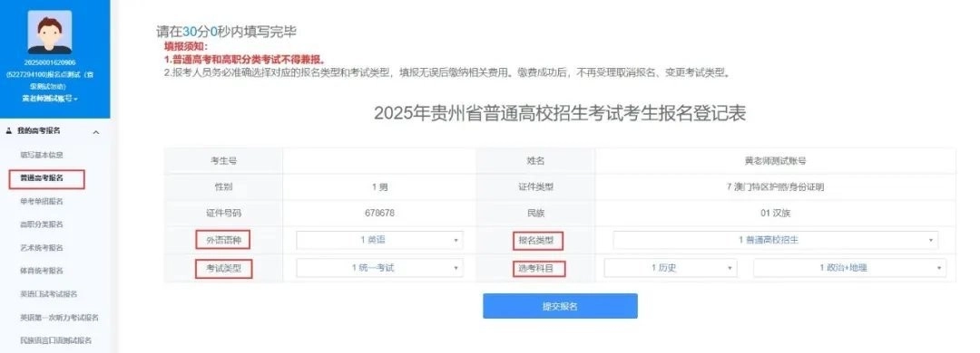 完成报考流程需先填写报考信息,确认无误后缴纳相关费用。在此特别提醒:普通高考与高职分类考试不可同时报考。