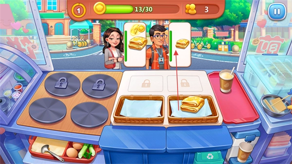 这款游戏以闯关模式作为核心玩法,每一个关卡都会设定独特的经营任务和不同梯度的挑战难度。随着玩家逐步通过关卡,还能解锁更多种类的菜品、丰富的食材以及多样的经营场景,以此持续为玩家带来新鲜感。
