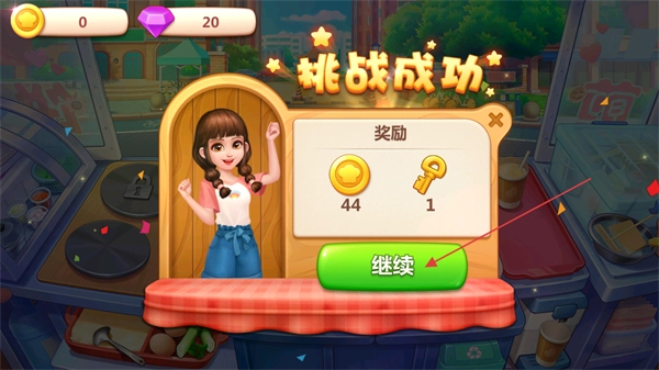 挑战成功后获得奖励,点击继续进入下一关。