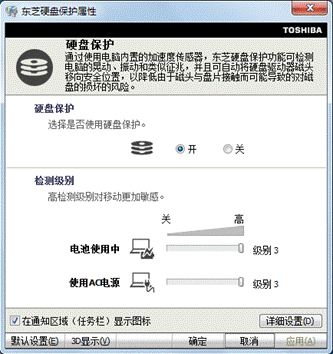 东芝硬盘保护系统就犹如汽车中的安全气囊一样,通过内嵌于主板上的加速感应芯片和预装在系统中的震动预测管理软件,实时的检测笔记本的震动情况,当笔记本主机突然发生震动或者移动时,感应器感受到这个突发的加速度之后会向硬盘发出一个即时信号,让硬盘磁头停止机械工作以减小硬盘损坏的可能;当笔记本电脑主机的震动消失之后,东芝硬盘保护系统的感应器会再次发出信号使硬盘重新恢复工作状态。从笔记本电脑出现大幅震动到硬盘停止工作的相应时间时间仅为0.5秒的时间,大大减低了发生硬盘损坏丢失数据的可能,从而真正意义上实现便携与安全兼顾。