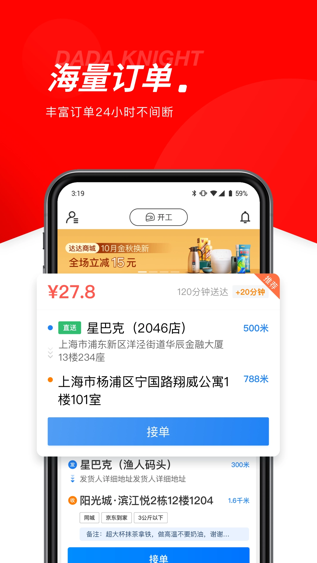 提供海量配送订单,24小时实时更新,便于大家随时接单。