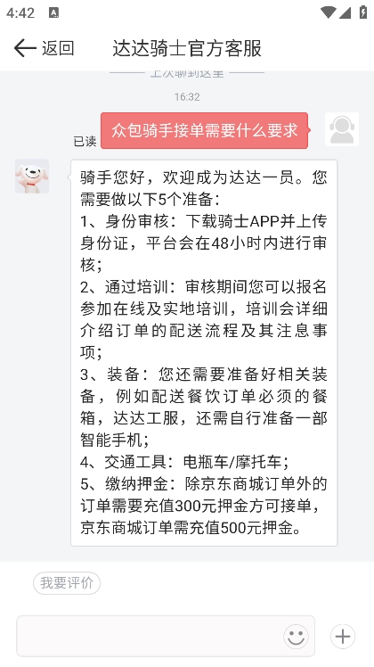 温馨提示:若您希望成为达达秒送骑士,需完成以下5项准备工作: