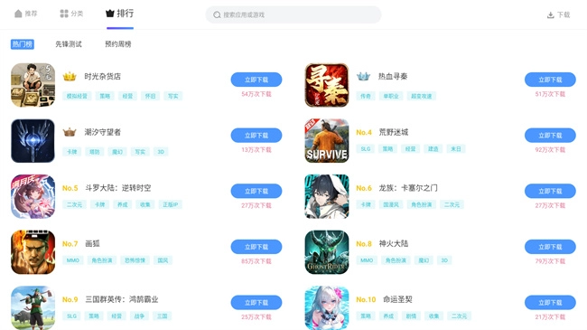 实时更新:同步上线最新开测游戏与当下热门应用,保障用户第一时间获取新鲜内容。