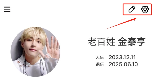 在家栏目,右上角可以编辑偶像信息以及进行相关设置