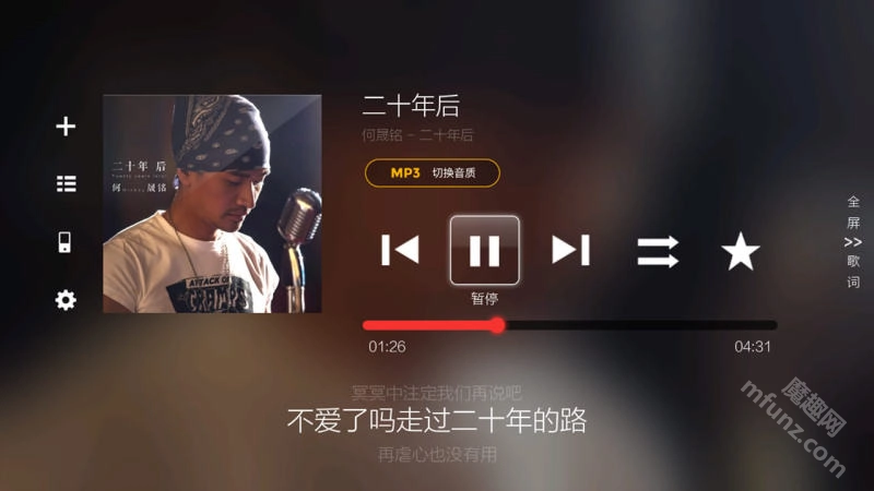进入播放页面后,按住遥控器的【右键】进行位移操作,即可进入歌词页面。