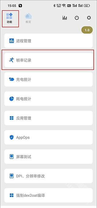 在监视器界面,能看到不少监视功能,要是你仅想监测游戏帧率,选择“帧率记录器”这一项就可以了,这时手机屏幕上会出现一个半透明的圆形悬浮按钮,上面显示着当前的帧数。
