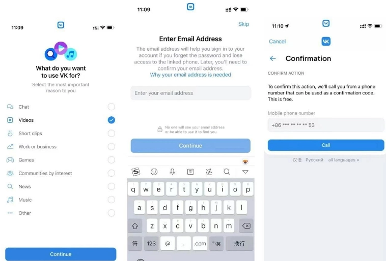 VK注册流程注意事项: