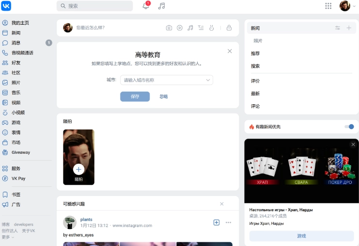 vk是俄罗斯本土的社交平台,在当地十分受欢迎,兼具微博和微信的特点,用户可以在上面浏览新闻、结识朋友。由于它的设计风格和功能与Facebook极为相似,所以VK也常被称作“Facebook克隆版”。