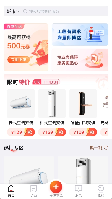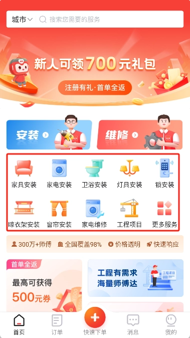 快速订单匹配:凭借强大的数据处理平台支持,98%的订单能在秒级完成匹配,师傅会在12小时内主动联系预约。