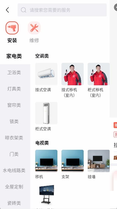 挑选服务类别:在主页选定所需的服务类别,例如“家具安装”,