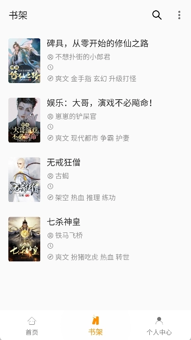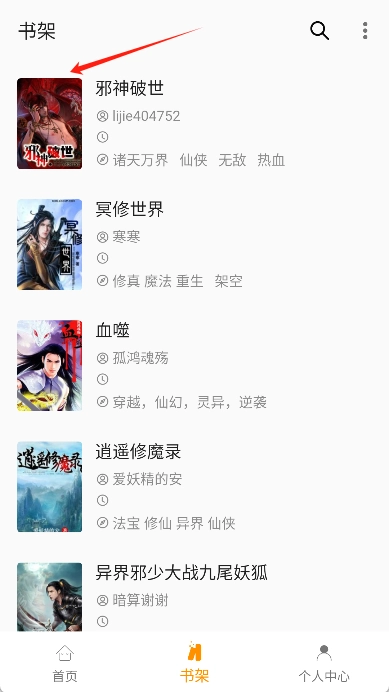 马上打开应用,进入书架页面查看已收藏的书籍,然后直接点击书名就能开始阅读了。