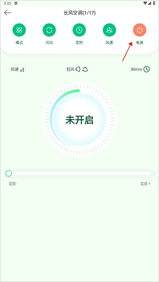 完成选择操作后,点击对应设备进入其控制界面,接着点击界面右上角的电源按钮。