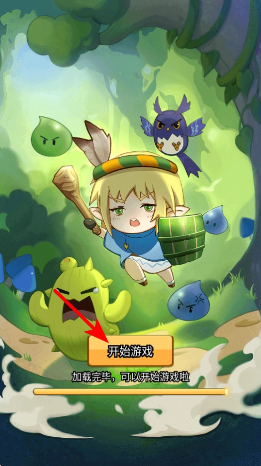 在游戏的启动界面,点击“开始游戏”按钮就能进入关卡,这是开启冒险玩法的基础步骤,之后还能体验战斗、装备合成等核心内容。
