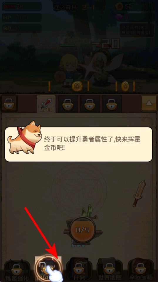 在战斗中积累足够金币后,打开角色成长界面,花费金币来提升勇者的攻击、生命值等基础属性,从而从根源上强化角色的战斗实力。