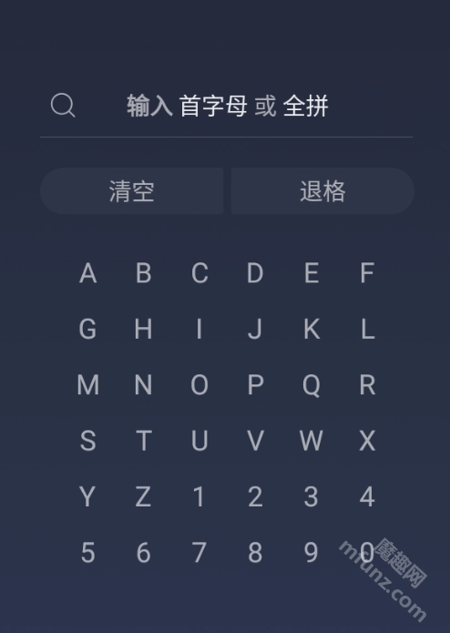 在界面左方有输入窗口,支持首字母和全拼搜索