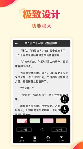 我们对传统小说阅读器的诸多细节做了优化,努力让每一处细节都符合最易用的标准,为您带来理想的用户体验。