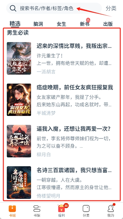 马上打开应用,在书城页面既能浏览推荐内容,也能通过搜索功能找到自己想读的小说。