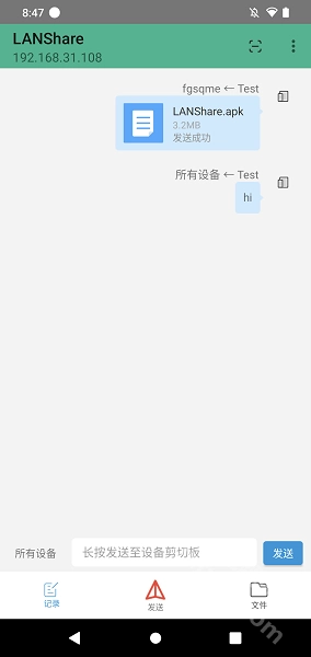 在手机端找到“文件”选项并点击,挑选出你所需的文件后点击发送,系统会自动在局域网内搜索可用设备,之后只需一键发送,对方就能直接收到该文件了!