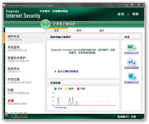 卡巴斯基(Kaspersky) KAV+KIS V8.0.0.402 NCT 江南混混汉化特别版 1、利用卡巴实验室2008年4月29日发布的8.0.0.357en TR 版汉化集成而来