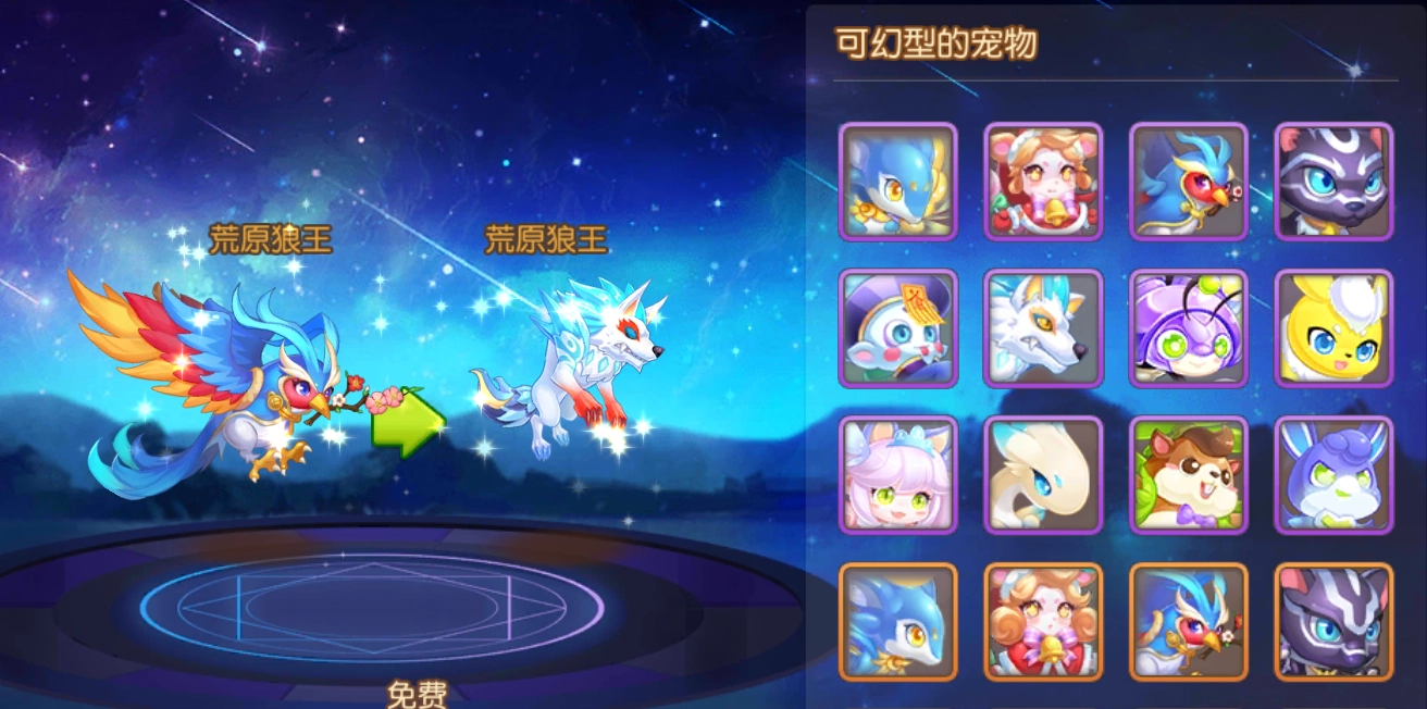 宠物还能进行幻形、重生和回收操作。幻形的意思很简单,就是消耗宠物幻形药水,让它变成其他宠物的样子。要是看腻了幻形后的模样,只需点击幻形功能,重新选择原来的宠物,就能免费恢复原样。