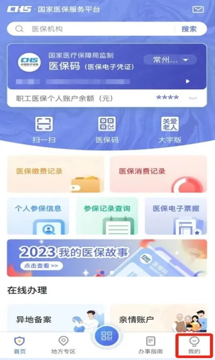 打开“国家医保服务平台”并完成登录后,点击页面右下角的【我的】按钮。