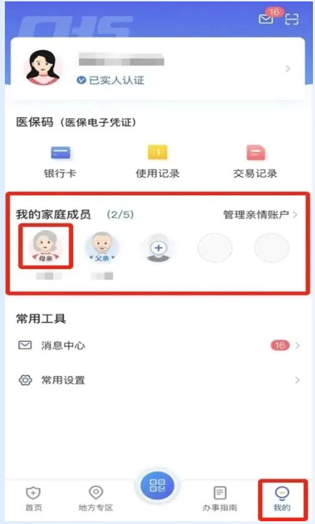 绑定成功后,回到首页点击【我的】—【我的家庭成员】板块,点击对应家庭成员的头像,就能获取家人的医保电子凭证了!