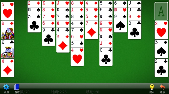 游戏的挑战性体现在怎样高效地规划与操作纸牌,从而实现最终的胜利目标。