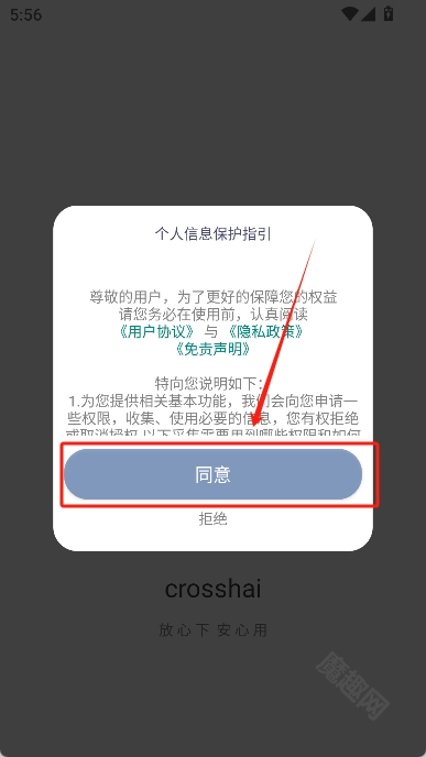 打开手机上的crosshair pro准星辅助器,点击“同意”按钮进入软件界面