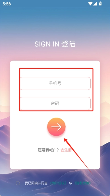 接着输入手机号码和密码,点击“登录”按钮就能进入个人账号了。