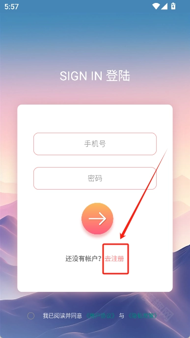 首次使用本平台的用户,可点击下方的“去注册”按钮完成新账号的注册操作。