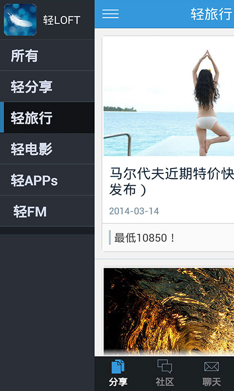 轻LOFT安卓版 5.2.140314 官方下载 轻LOFT安卓版是一款休闲娱乐信息集合软件。软件涵盖轻分享、轻旅行、轻电影、轻APPs、轻FM。还可以在和朋友聊天、评论表情,特别推出小黄鸭动态表情!非常适合闲暇时刻打开观赏,欢迎下载使用!